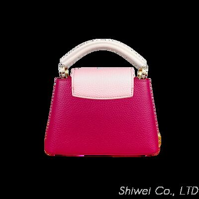 This chic auth pre-owned designer Capucines Mini handbag is crafted from Taurillon leather, featuring delicate light pink accents on both the flap and top handle. A gold-tone chain adorned with enamel Monogram Flowers allows for elegant shoulder carry, while a slim, detachable leather strap provides the option for cross-body or shoulder wear, combining style with versatility.