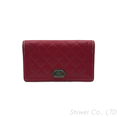 Authentic Luxury Pre-owned Chanel Red Lambskin Leather Long Full Flap Boy Bag Wallet
