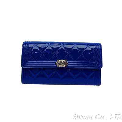 Pre-Owned Chanel Quilted Le Boy Long Flap Wallet Blue Patent Leather