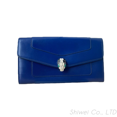 Discover the timeless elegance of the Authentic Secondhand Luxury Bvlgari Serpenti Forever Zip Wallet in striking blue leather. Meticulously crafted from premium calfskin, this luxurious wallet showcases Bvlgari’s iconic Serpenti head snap closure, beautifully detailed with enamel and gemstone eyes—a true symbol of sophistication and Italian artistry.