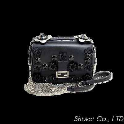 Add a playful yet luxurious accent to your collection with this Previously Owned Luxury Fendi Blue/Black Flowerland Leather Double Micro Baguette Bag. Crafted from supple calfskin leather, this statement piece features intricate 3D floral appliqués and glossy stud embellishments, capturing the iconic Fendi Flowerland motif.