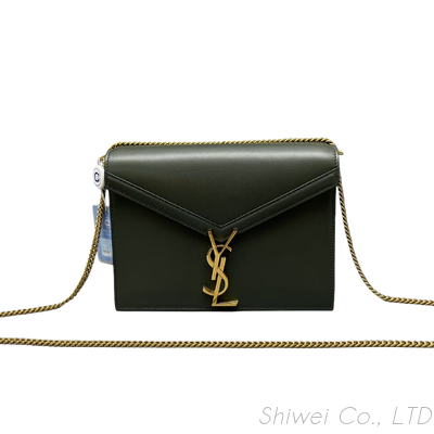 Elevate your look with this Pre-loved Branded Saint Laurent Cassandra Chain Envelope Flap Bag in Dark Green Smooth Leather GHW. Crafted from luxurious smooth calfskin leather, this bag features a striking dark green color that’s both timeless and sophisticated. The signature envelope flap is adorned with the iconic YSL gold-tone monogram, offering a touch of Parisian elegance.