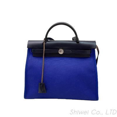 Elevate your everyday style with this Authentic Pre-owned Hermès Herbag Zip 31 PM in Royal Blue Canvas with Silver Hardware. This elegant tote is crafted from vibrant Royal Blue canvas and complemented by sleek black Vache Hunter leather trim, creating a striking and sophisticated color contrast.