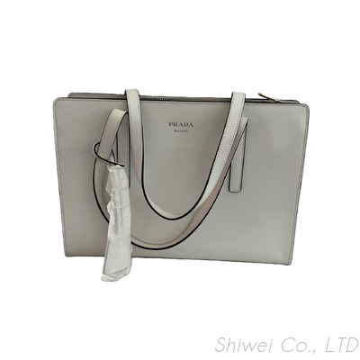 The medium size offers a practical interior that easily fits daily essentials such as a wallet, phone, keys, small cosmetics and agenda. A top zip closure keeps belongings secure, while interior zip and slip pockets provide organization. Discreet PRADA MILANO branding on the front and polished silver-tone hardware complete the understated yet luxurious aesthetic.