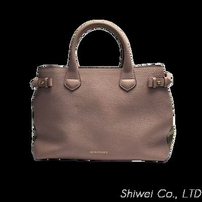 This Authentic Gently Used Burberry Medium Banner Bag in Pink Grained Leather is a refined everyday tote that blends classic British style with practical design. Crafted from supple grained calf leather, the bag has a soft yet structured silhouette that holds its shape while remaining comfortable to carry.
