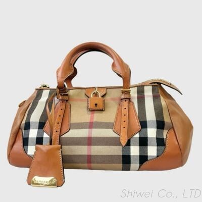 Preowned House Check luxury Tote Bag Used Canvas & Leather Boston Bag 0
